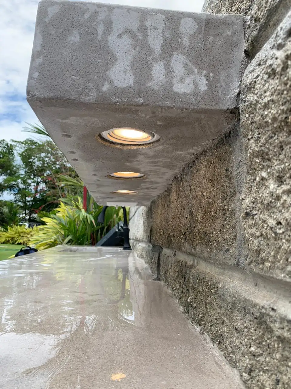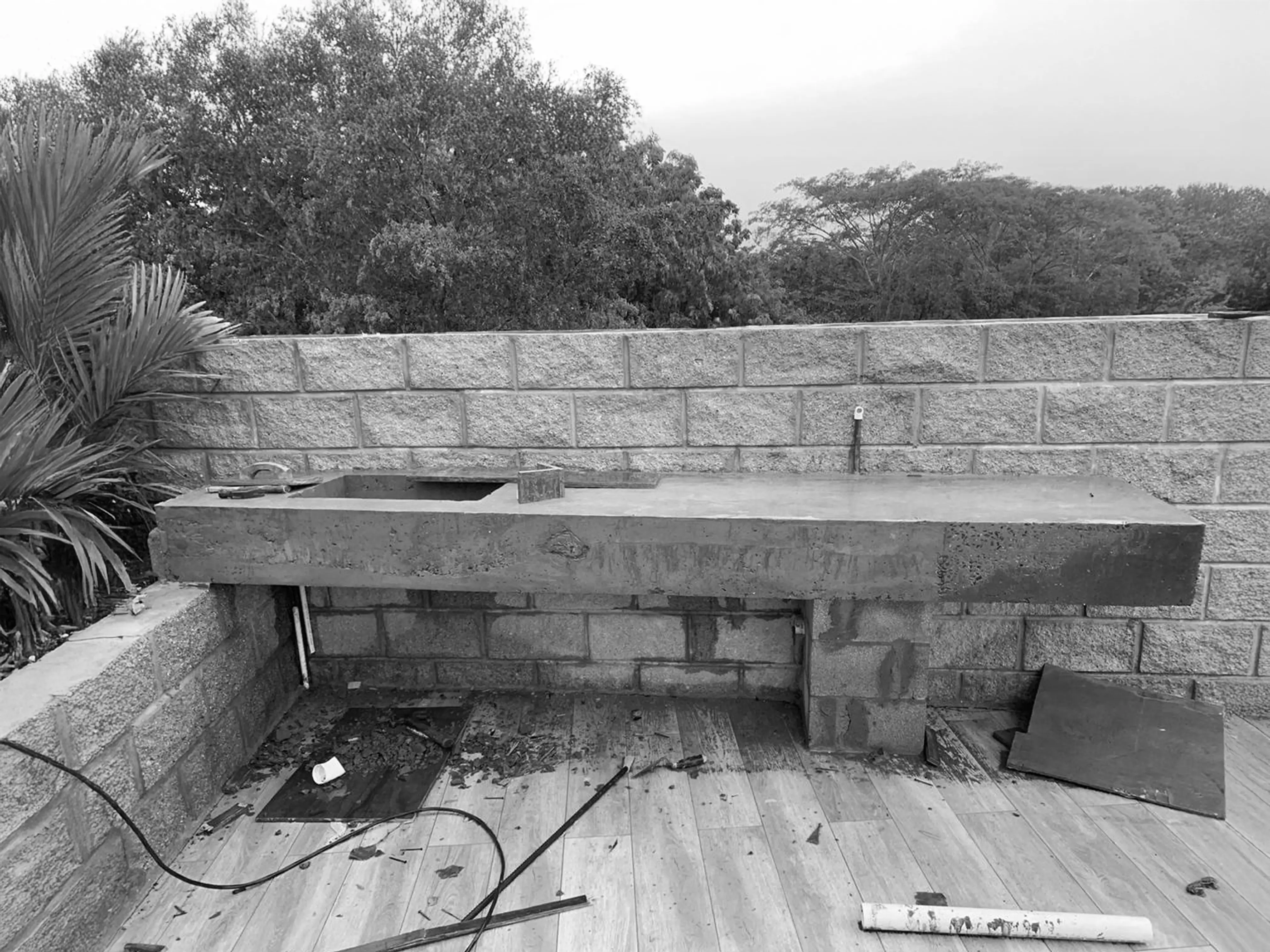 Proyecto residencial que integra la construcción de 2 baños modernos y un mesón exterior para BBQ.