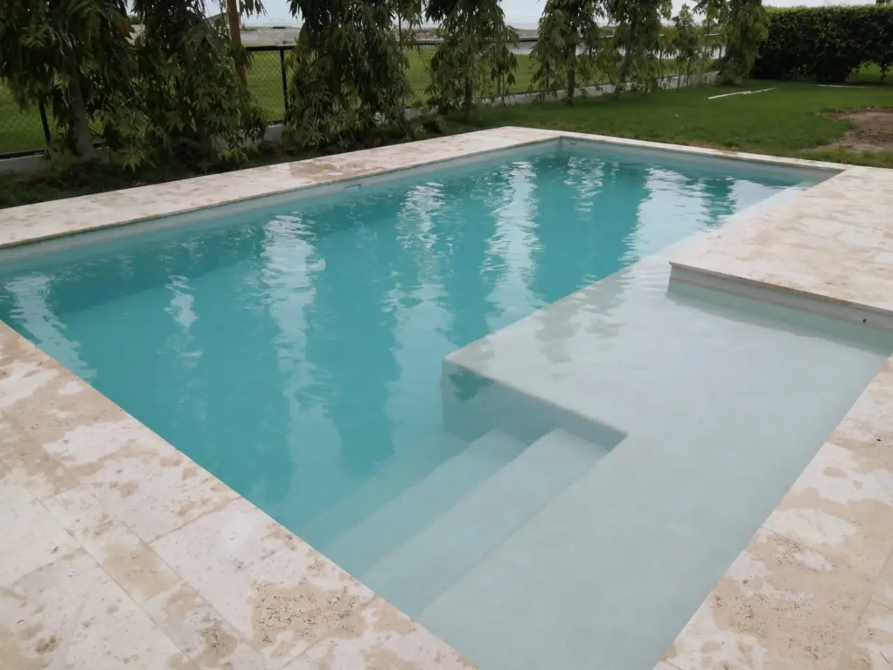 Piscina de diseño en cemento pulido integral, La elegancia del concreto visto junto a la brisa marina
